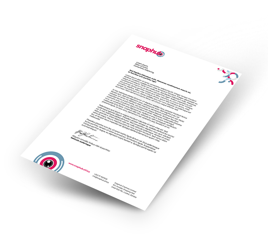 Branding designs for SnapHub, camera shop at Lusaka, Zambia